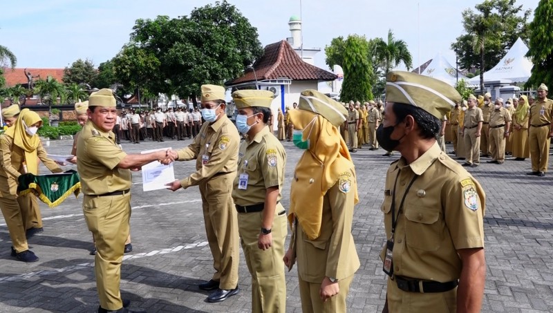 Windu Suko Basuki menyampaikan selamat kepada seluruh ASN yang mendapatkan SK kenaikan pangkat dan beberapa pesan diantaranya kenaikan pangkat dapat menjadi motivasi bagi ASN untuk terus meningkatkan kinerja.