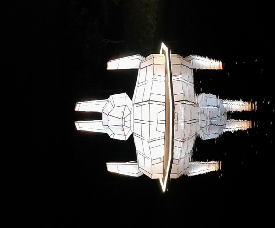 Kami terus menjelajahi area festival di tepi sungai yang telah dipasangi gerakan cahaya kontemporer yang bercerita tentang keindahan bulan mengiringi harapan akan kehidupan yang lebih baik di masa depan.