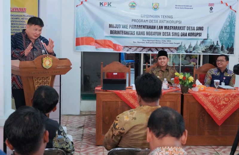 Acara tersebut menghadirkan narasumber dari Tim KPK RI, Friesmount Wongso, Bunga Alamanda, dan Anggi Fitriani. Acara dihadiri oleh Plt. Inspektur Inspektorat Provinsi Jawa Tengah, Dhoni Widyanto, S.Sos., Bupati Kendal, Dico M Ganinduto, B.Sc, Inspektur Kendal, Tivip Poernomo, Kepala Dispermasdes Kendal, Yanuar Fatoni, Camat Ngampel, dan diikuti oleh para kepala desa beserta jajarannya di Kabupaten Kendal.