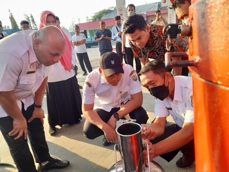 RILISJATENG.COM – Bupati Kendal, Dico M. Ganinduto, B.Sc didampingi Kepala Disdagkop dan UKM Kendal, Ferinando Rad Bonay dan Sales Branch Manager PT. Pertamina Rayon III Semarang, Novan Reza Pahlevi cek ketersediaan BBM di wilayah Kabupaten Kendal. Kali ini dilakukan di Pom Bensin Jambiarum, Kecamatan Patebon, Rabu (5/4/2023).